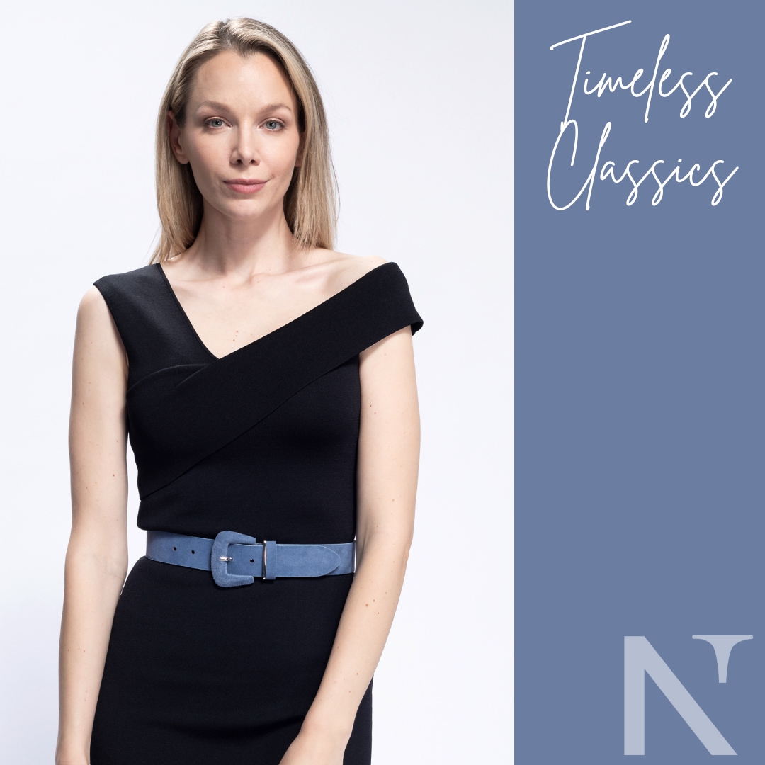 Das neue Gürtel-Modell aus dem Kollektions-Thema „Timeless Classics“ lässt sich auch ganz einfach über jedes Kleid stylen.
